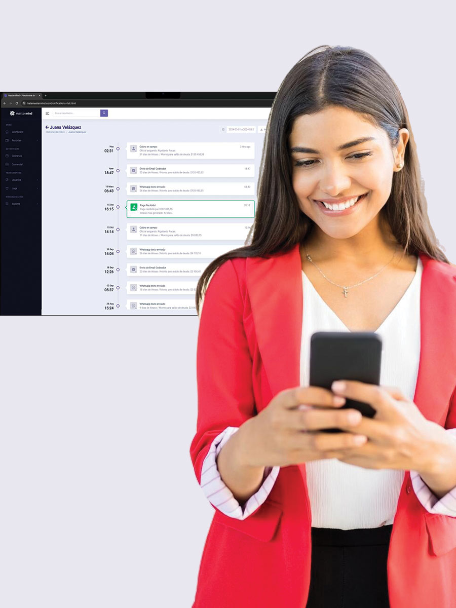 Integra todos tus canales digitales de cobro en una sola plataforma y ejecuta estrategias inteligentes de cobranza multicanal, incluyendo: call centers, mensajería SMS, WhatsApp y cobranza en campo.