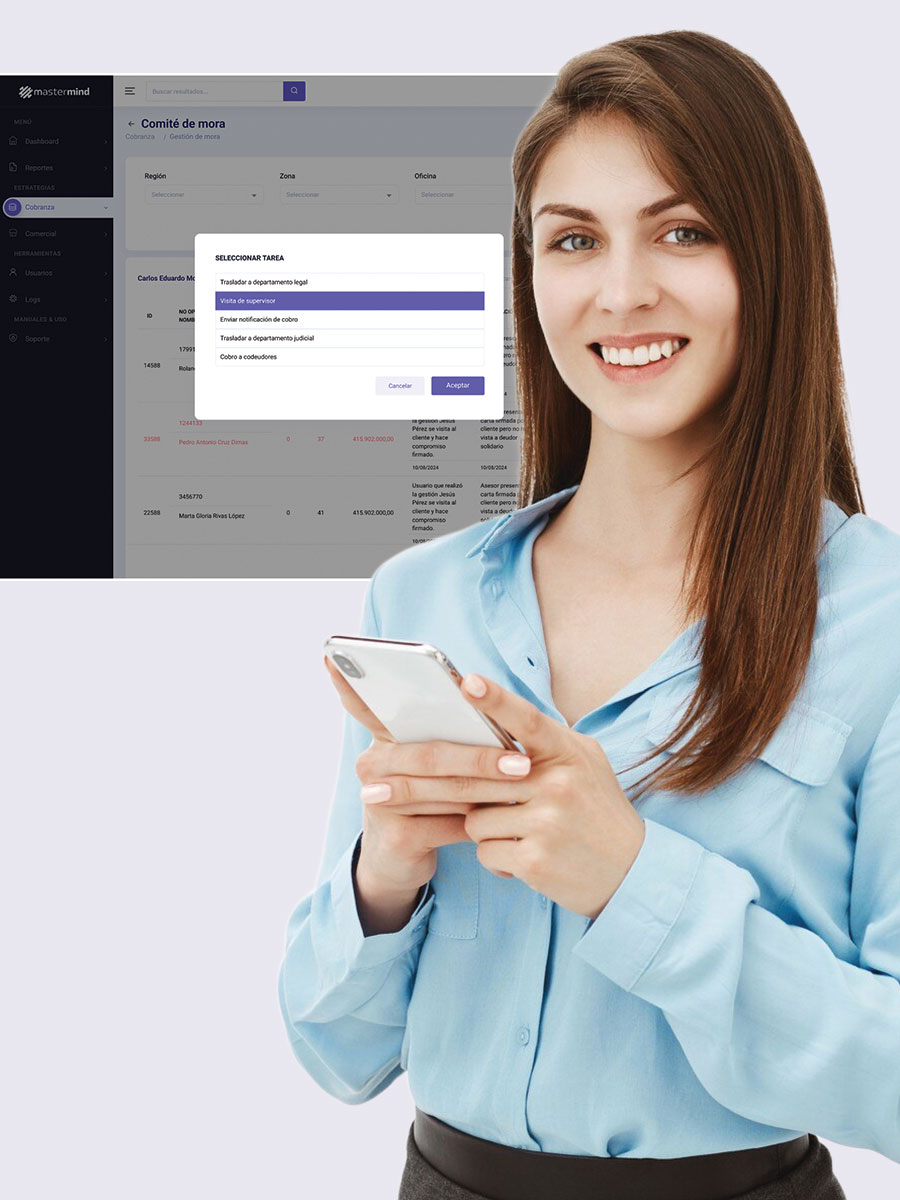 Automatiza procesos y mejora la eficiencia operativa en cada etapa de cobranza.